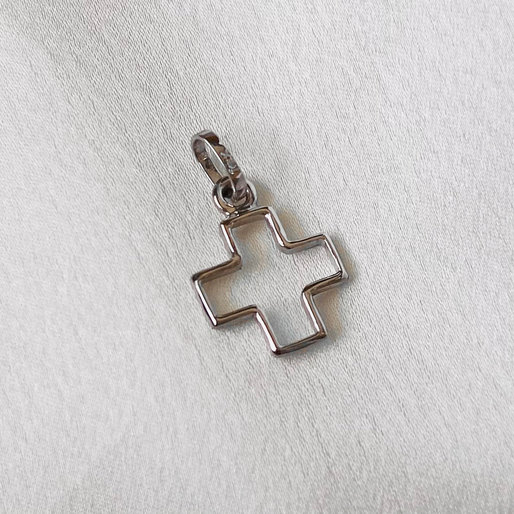 Cruz Silueta Cuadrada Oro Blanco y Amarillo 14K